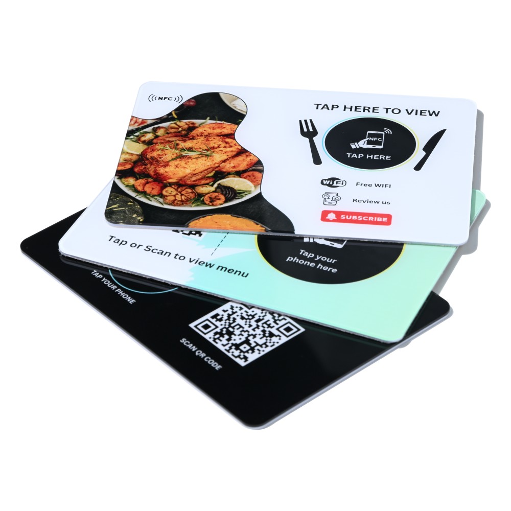 An acrylic NFC menu (also called an NFC table sign or NFC menu board) is an attractive physical display made from acrylic that contains an embedded NFC (Near Field Communication) tag. When a guest taps their NFC-enabled smartphone to the sign, the phone instantly opens a URL, menu, order page, payment page, video, or other digital content — no app download required for most modern phones. It combines premium tactile branding (acrylic with UV print/engraving) with the convenience and hygiene of contactless digital experiences.