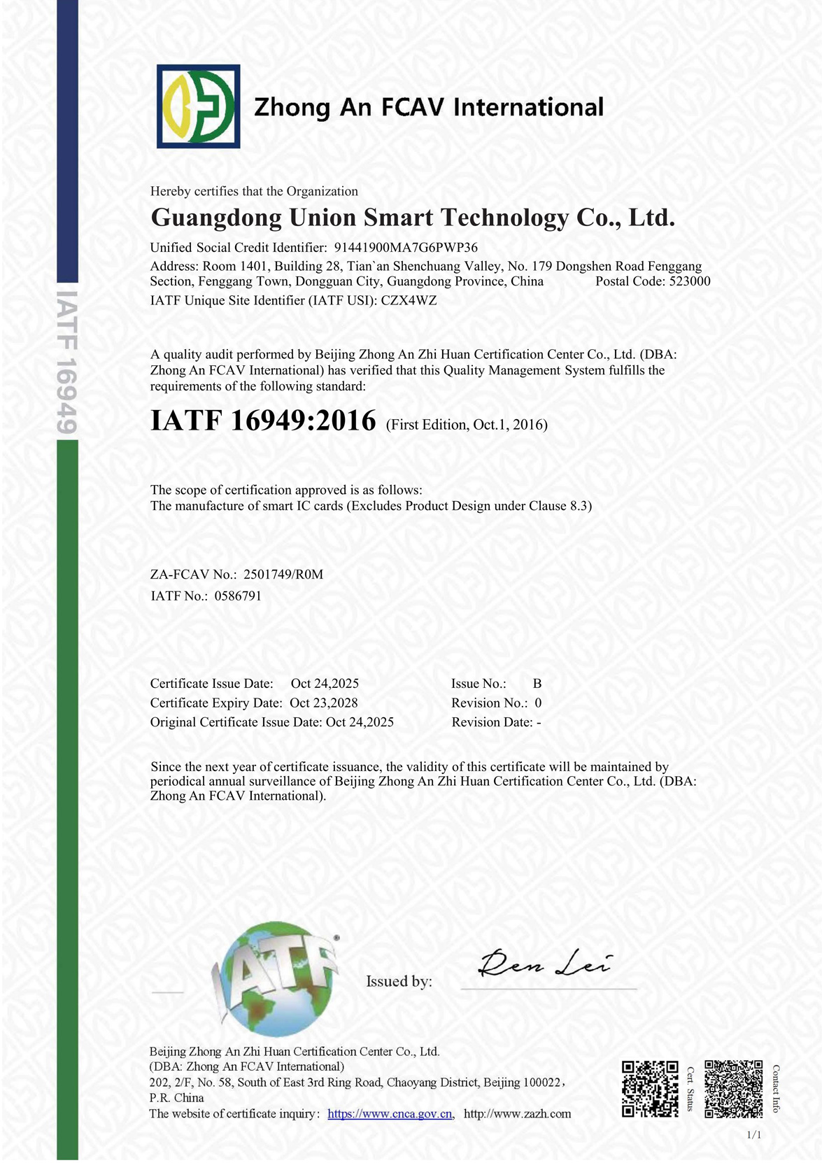 We have passed IATF 16949 certification.